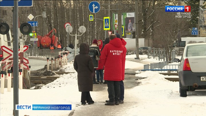 Члены штаба Народного фронта проинспектировали железнодорожный переезд на улице Нехинская в Великом Новгороде