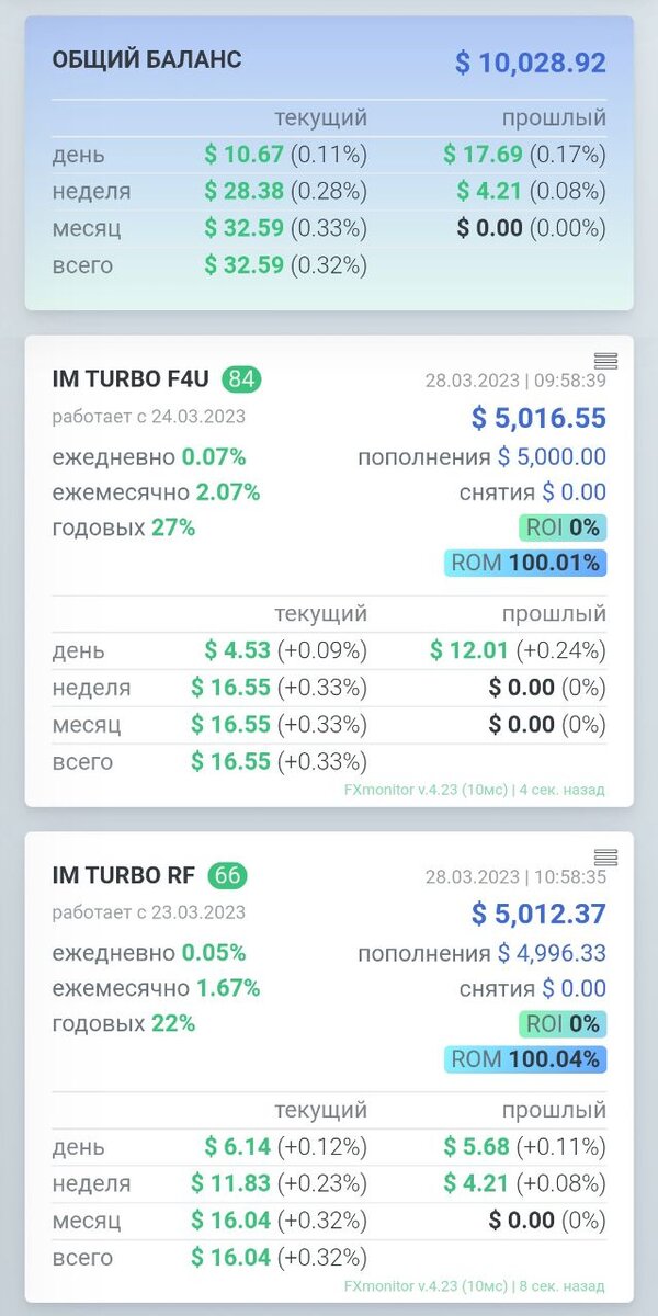 Ранее я никогда не пользовался торговыми роботами. Возможно, так и не начал бы пользоваться. Но мне его показал один знакомый человек, которому я могу доверять. Он хорошо знает разработчиков данного робота и участвовал в его тестировании. Я наблюдал за процессом несколько месяцев, прежде чем начать им пользоваться. ДОХОДЫ: 27 марта: +17,69$ (+0,1769% г.) ИТОГО: +17,69$ (+0,1769% г.) Подписывайтесь на мой Телеграм-канал!