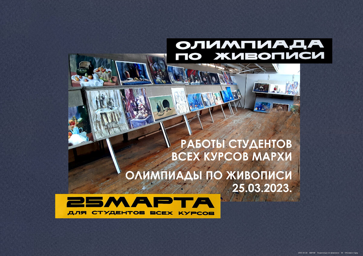 25 марта 2023-го года в Московском архитектурном институте состоялась ежегодная внутривузовская олимпиада по живописи. В ней приняли участие студенты всех курсов МАРХИ, а также недавние выпускники нашего института.
