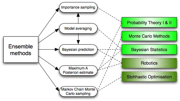 - R: по мешьшей мере три пакета предлагают средства для байесовской модели усреднения: BMS (сокращение от Bayesian Model Selection), пакет BAS (сокращение от Bayesian Adaptive Sampling) и пакет BMA. Пакет H2O предлагает большое число моделей обучении машин, включая модель сборки ансамбля, которая может быть тренирована с помощью Spark.