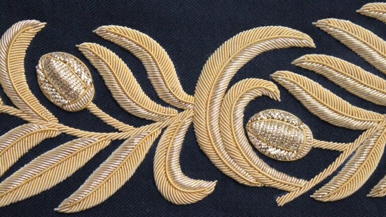 - Тонкую металлическую (обычно золотую или серебряную) нить для вышивания.