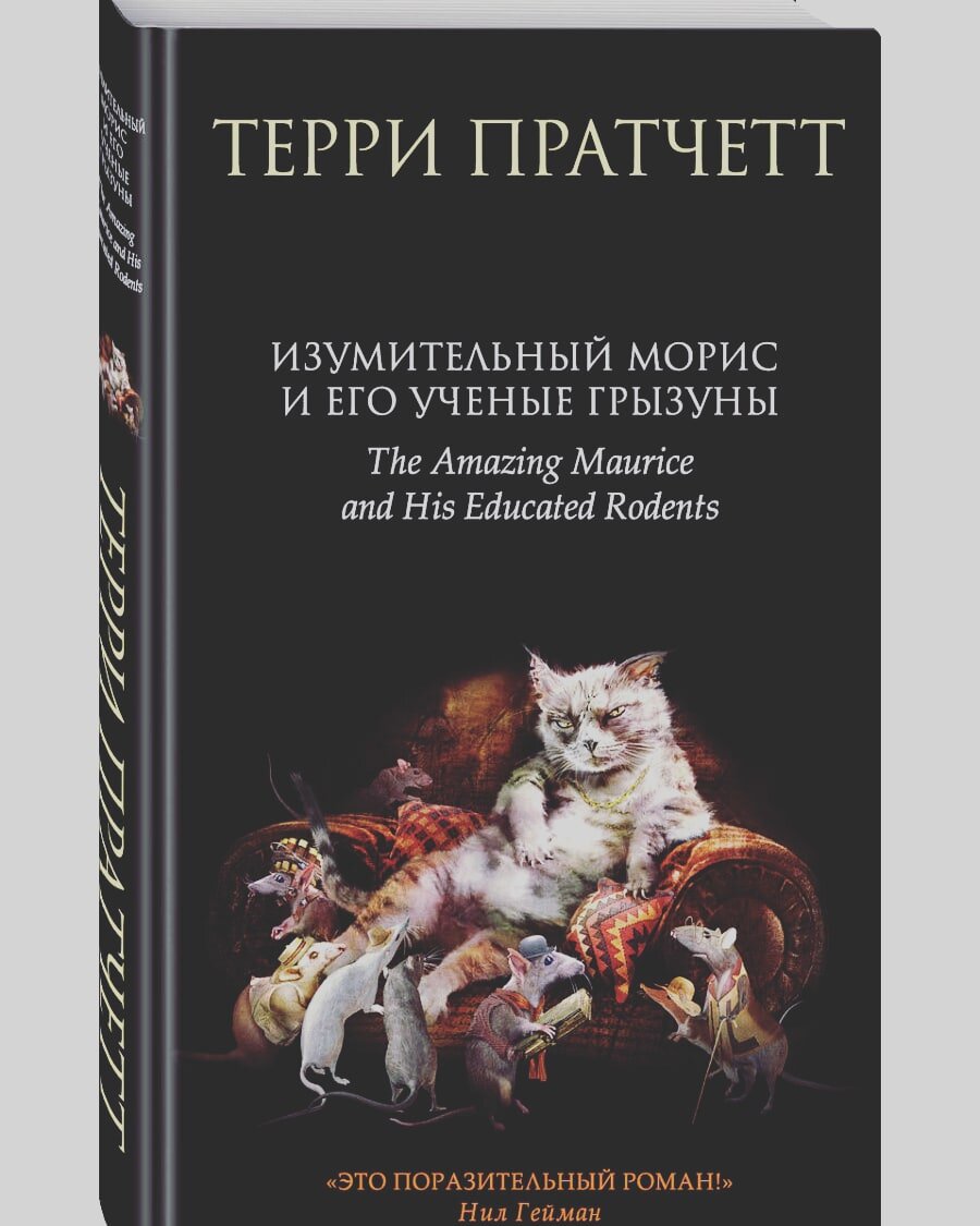 "Изумительный Морис и его учёные грызуны" Терри Пратчетт. "Это история про людей и крыс. А самое сложное в ней - это решить, кто тут люди, а кто - крысы" В один прекрасный момент кот(Изумительный Морис) и крысы из одного клана обретают сознание (отходы деятельности незримого университета, вероятно), вербуют себе простачка из человеков и придумывают(точнее придумывает Морис, конечно же) гениальный план по обогащению (отсылка к Гамельнскому дудочнику), который длительное время работает и приносит таки неплохой гешефт. Но в один прекрасный момент, конечно же когда все решают что это последняя их афера, все идёт на перекосяк - тут и настоящий дудочник, и нечистые на руку/помыслы/действия крысоловы и нечто темное, страшное и злое из подземелий... Тот редкий случай, когда хэппи-энд мне зашёл от слова совсем. Обычно мне не по душе счастливые финалы(нонфикшн и биографии не в счёт). Но тут он просто был необходим. Пратчетт как всегда шикарен. Тонкий юмор, ирония, сарказм, философские мысли,