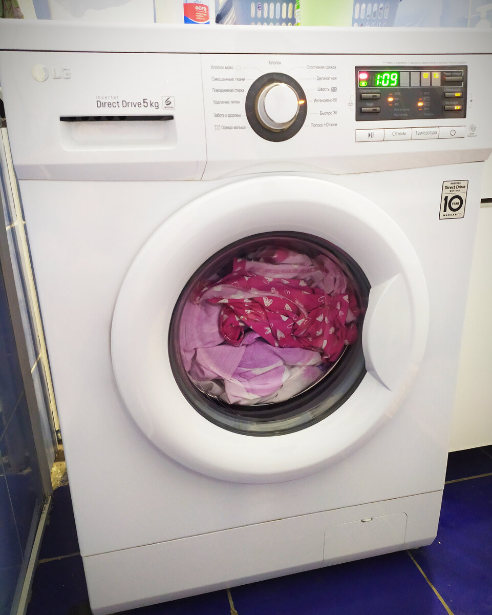Вчера вечером заменила нам с мужем постельное белье. Первым делом запускаю стирку