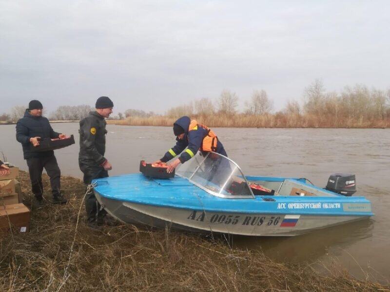 В Оренбургской области ежегодно из-за демонтируемого понтонного мата на период паводка отрезанными водой от «большой земли» остаются три села в Соль-Илецком городском округе. Спасатели областной АСС на лодках доставили людям продукты.