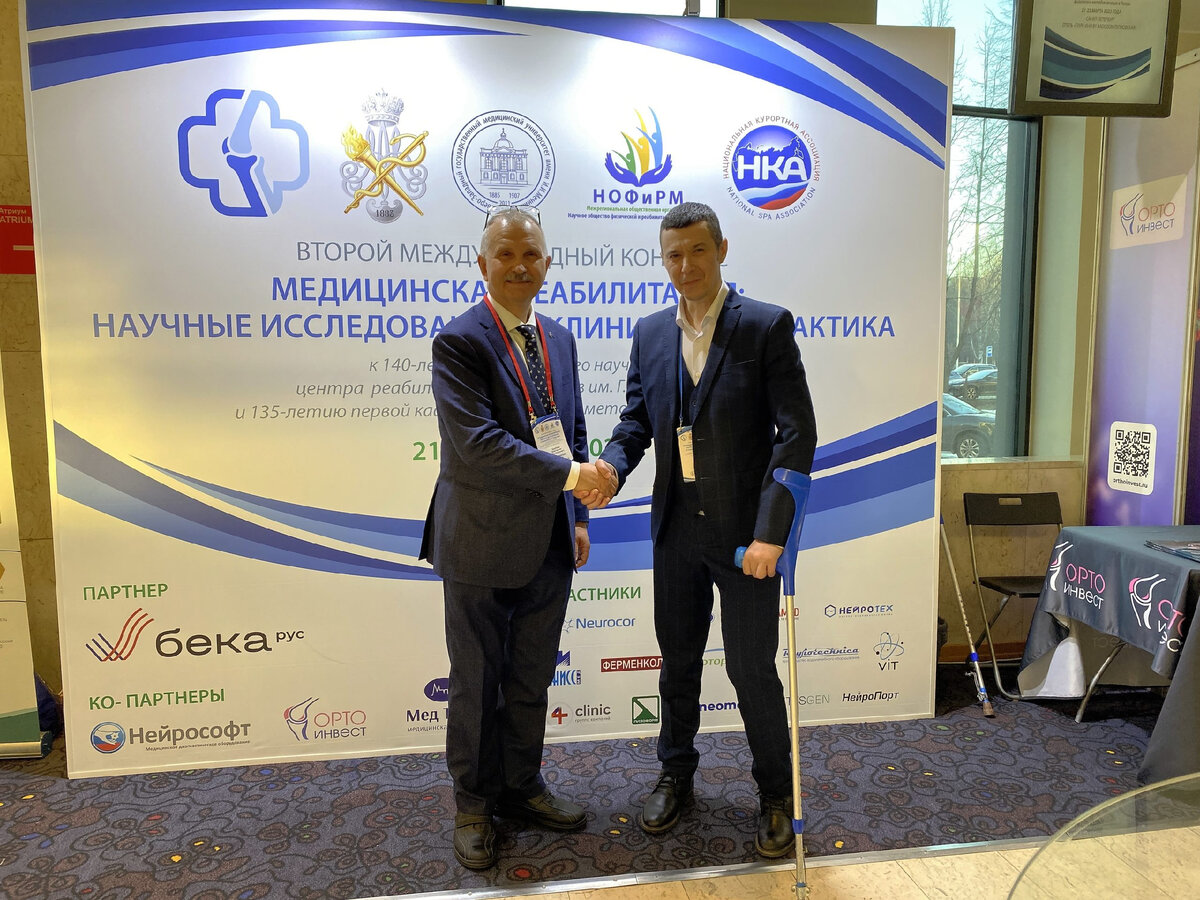 Новое развитие получили и отношения Марата Ильясова с Константином Константиновичем Щербиной, доктором медицинских наук, профессором кафедры травматологии и ортопедии, директором Института протезирования и ортезирования Федерального научного центра реабилитации инвалидов им. Германа Альбрехта. Они заочно познакомились во время нескольких онлайн-встреч, затем встретились в городской клинической больнице №7 в Казани, где разработчик авторских тренажеров проводил очередной мастер-класс по их использованию для специалистов учреждения. И вот новая встреча, теперь на конгрессной площадке в Санкт-Петербурге, где Константин Константинович бы сопредседателем секции «Инновационные реабилитационные технологии».