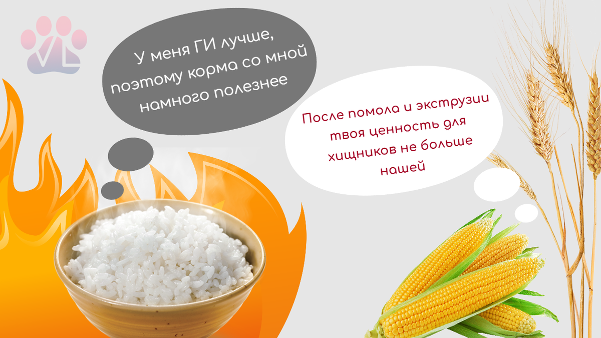 В последнее время даже у меня на канале стали чаще оперировать понятием гликемического индекса (ГИ). При этом даже не зная по-настоящему, что это за зверь и от чего он зависит. Приветствую читателей канала vetLIFE! Терпение лопнуло. Когда-нибудь также будет и со злосчастными ГМО. ГИ уже долгое время используется в диетологии людей для ранжирования продуктов в зависимости от того, насколько быстро они обеспечивают повышение уровня глюкозы в крови (гипергликемию) и как скоро тот возвращается к своему «голодному» уровню [1]. Причём важно учесть, что ГИ зависит не только от вида продукта и его приготовления, но и ряда непищевых факторов. ГИ варьируется у людей даже в течение дня, не говоря уже о его различиях в течении жизни [1]! Чем выше степень помола и дольше варка, тем выше ГИ. И т.д. и т.п. Многие комментаторы и авторы прикладывают человеческий ГИ к кошкам и собакам. Это вообще взрывает мой мозг. Берут ГИ всеядного животного и применяют его к плотовсеядным (собакам) и плотоядным (кош
