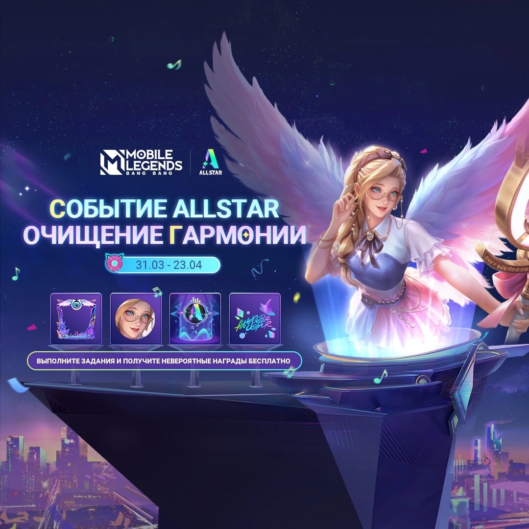 Событие ALLSTAR "Очищение гармонии" доступно прямо сейчас!😍 С 31.03 по 23.04 выполните задания, чтобы собрать техноноты и разблокировать БЕСПЛАТНЫЕ награды, такие как эксклюзивный облик ALLSTAR Рафаэль "Ангельское селфи", рамку аватара "Сияй! Виртуальный поп!", эффект возрождения "Виртуальный поп" и граффити "Стань суперзвездой" (3 дня).🎁 ⭐ALLSTAR уже в самом разгаре, приглашайте друзей и наслаждайтесь щедрыми событиями вместе!