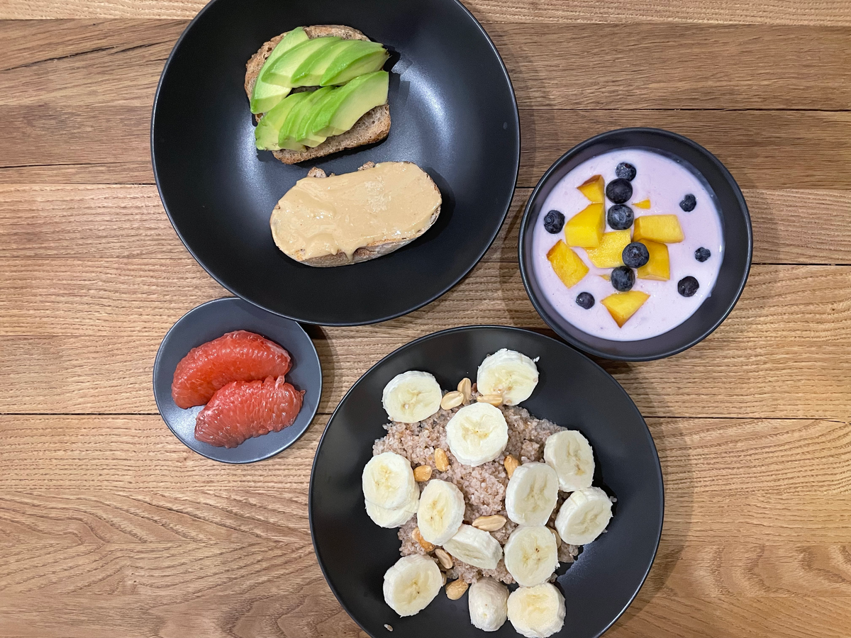 - полба, сваренная на воде, в которую добавил нарезанный кружочками спелый банан, а также жареный солёный арахис для текстуры, чтоб похрумкать чем было;