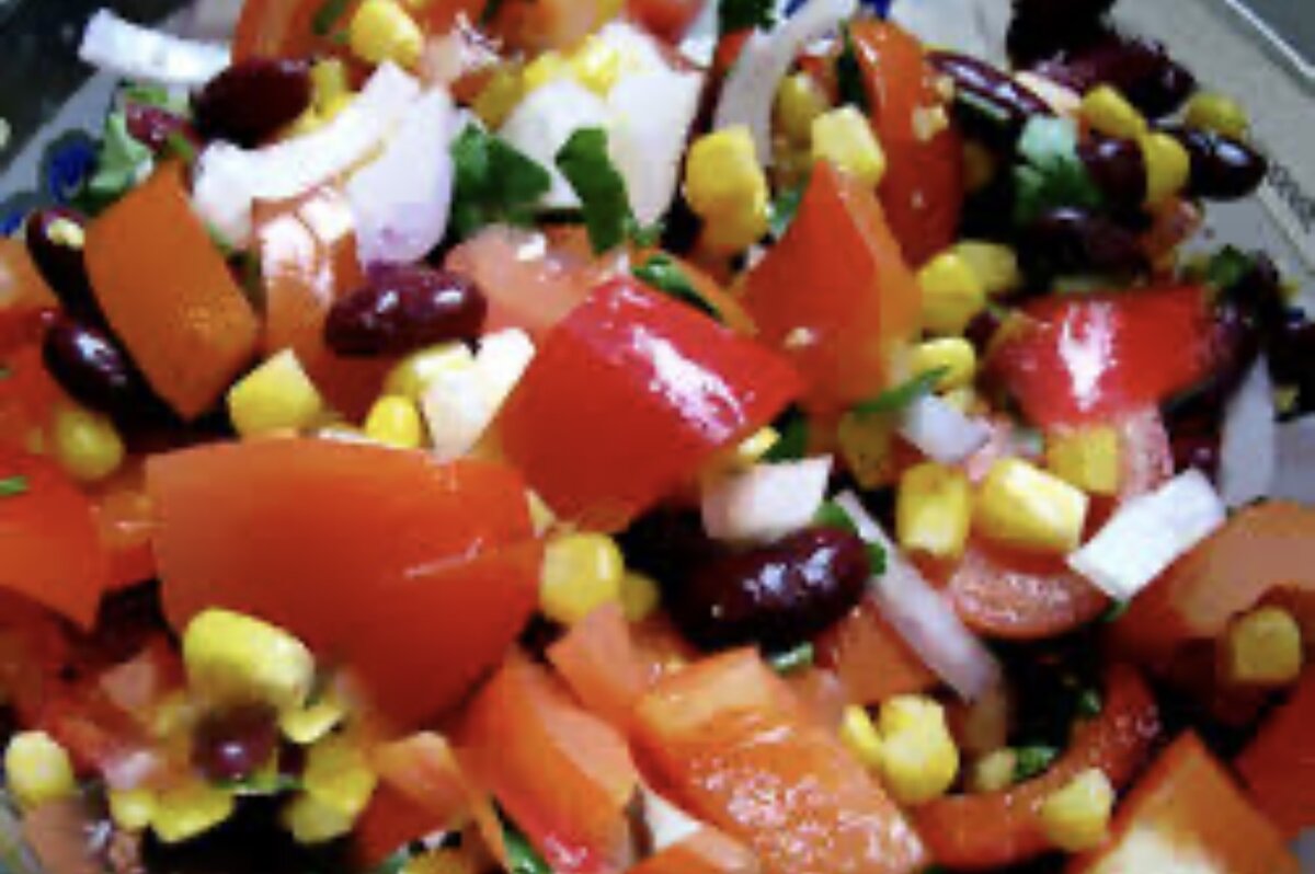 Консервированная фасоль в салатах! 1 салат: Нам понадобится 1 банка красная консервированная фасоли, 1 банка кукурузы, 2 помидора, 1 перец сладкий красный, 0,5 лимона, 1 пучок укропа, 2 ст.л. масла оливкового, 3 зубчика чеснока, соль, перец черный (молотый) - по вкусу. Можно добавить лук по желанию. Помидоры, перец и укроп порезать. Чеснок раздавить. Банки с фасолью и кукурузой открыть. Все ингредиенты смешать. Полить соком лимона, оливковым маслом, посолить и поперчить. Время приготовления 15 минут!!! 2 салат: Фасоль красная консервированная 250г, кукуруза консервированная 280г, сухари черные 120г (можно использовать кириешки), яйцо куриное 2 штуки, 2ст.л. майонеза, соль, перец, зелень - по вкусу! Яйца и укроп порезать. Банки с фасолью и кукурузой открыть. Все ингредиенты смешать. Заправить майонезом посолить и поперчить. Порция на 4 человека время приготовления 15 минут!!! 3 салат: Фасоль красная, морковь по корейски, соль, перец, чеснок, растительное масло, лук, укроп. Укроп и