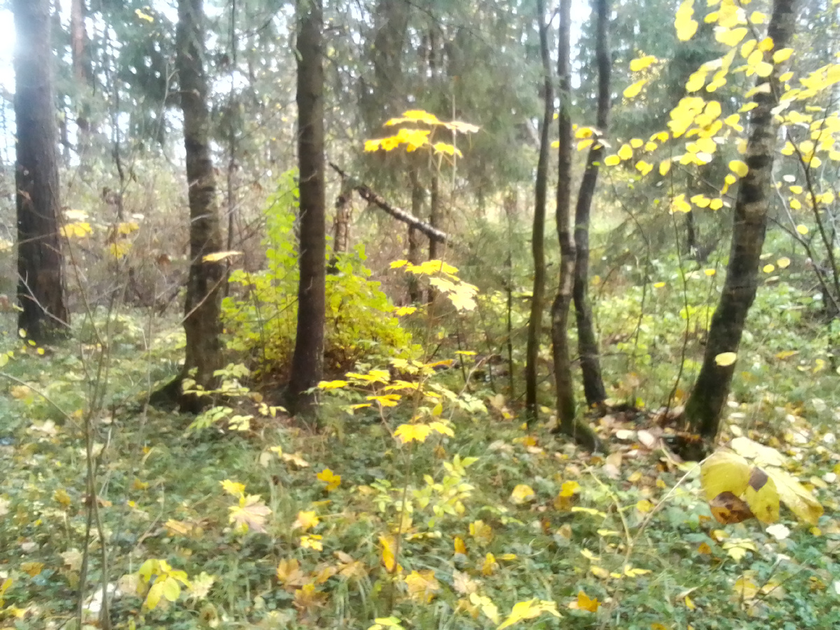 Шёл в направлении "туда" и делал редкие фото. Так, ни о чем - лес средней полосы. Иногда осматривал землю под вывороченными корнями упавших деревьев. За качество фото - извините! Не фотоаппарат! Сам расстроен, но переснять нет возможности. Только учусь пользоваться телефоном... Вроде как норм, а когда в комп закидываешь - руки бы оторвал!