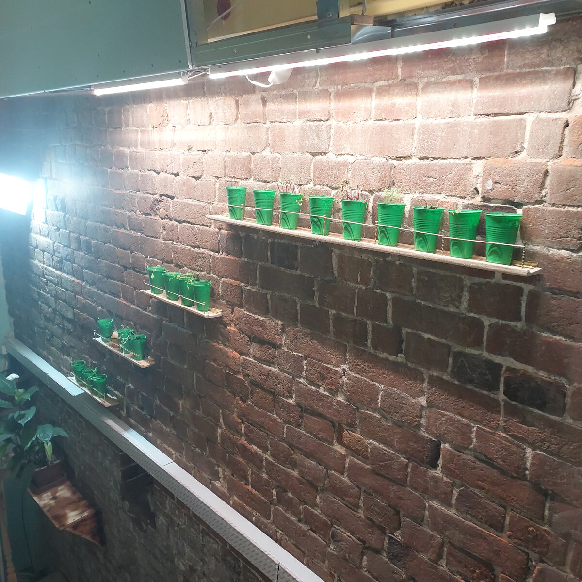 Наша зеленая стенка теперь не только глаз радует, но и вкусовые рецепторы)) Для тех кто впервые заглянул, коротко, в мастерской на 300-летней стене. решил я разместить полочки и создать зеленую стенку Вот как начиналось: И что на сегодняшний день выглядит довольно симпатично Скажу честно не все приживается. Думаю почва не очень хорошая попалась. В ней всё как-то плоховато растет и водой не смачивается, как будто. Ну ладно. Любимица Да уже все определились. Самый первый стакашек. Редиска. Очень нежный вкус редиса. Сочные, приятные. Лично мне еще свеколка нравится Но её пучками есть надо. Вкус не такой яркий, но чувствуется. Есть еще хорошо прижившаяся зелень Но не подписана, что посажено не помню)) Еще подожду и буду пробовать, может на вкус угадаю)) Огород на балконе Пока только рассада под него)) и не только под него видимо а ещё и на участке большую часть высадим)) Просто нет столько места на балконе, даже на всех в сумме)) Ведь еще и в микротепличке всё забито А вот это болото на п