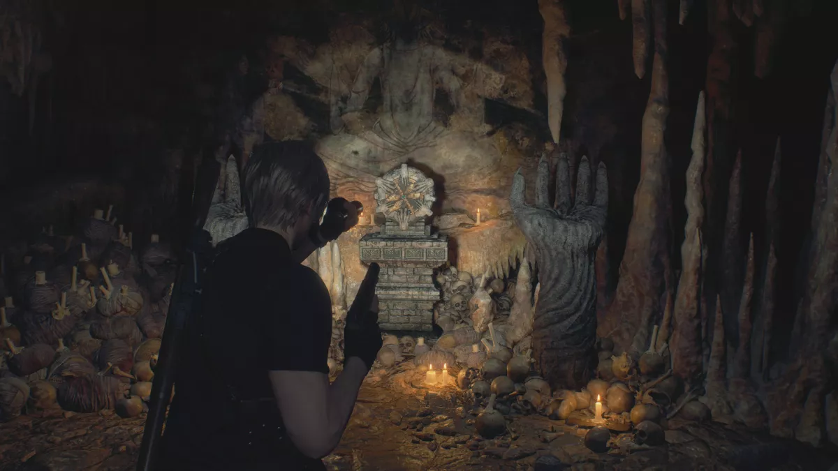 Головоломки в пещере Resident Evil 4 Remake составляют большую часть четвертой главы, поскольку вы ищете способ разблокировать церковь и спасти Эшли из тюрьмы. Ваше путешествие приведет вас к Пещере Фрески , где вы найдете пьедестал с церковным ключом, но, увы, он заперт за хитроумным приспособлением и двумя гигантскими каменными руками. Используя свою недавно приобретенную лодку, вы должны плыть вокруг озера и его пещерных святилищ, найти две каменные головы, чтобы вернуть их и вставить в каждую руку, хотя для этого вам придется решить пару головоломок. Вот как решить пещерные головоломки Resident Evil 4 Remake, чтобы получить две каменные головы и разблокировать церковный ключ. РЕШЕНИЕ ГОЛОВОЛОМКИ «БОЛЬШОЙ ПЕЩЕРНЫЙ ХРАМ» Голова Отступника находится в Большом Пещерном Святилище рядом с Пещерой Фрески, до которой вы можете добраться на лодке. Когда вы прибудете в этот район, вы обнаружите запертую дверь с пьедесталом снаружи, который требует, чтобы вы нажали три кнопки из восьми с симв