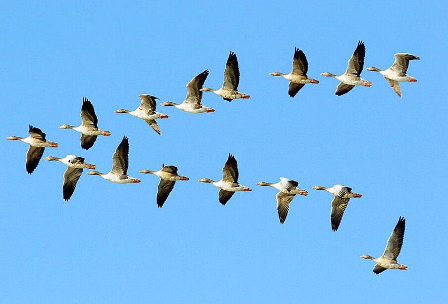 литературный дневник: Очень поучительно🍀 Если вы когда-либо наблюдали за косяком гусей, летящим к югу на зимовку, вам возможно, интересно будет узнать, что ученые объяснили, почему стая летит клином. В ходе исследования выяснилось, что каждая птица, взмахивая крыльями, обеспечивает подъем для птицы, находящейся непосредственно за ней. Благодаря такому построению вся стая увеличивает скорость полета по меньшей мере на 71% (!!!) по сравнению со скоростью, которую может развить каждая птица в отдельности. Вот и первый урок: Люди, согласованно двигающиеся в одном направлении с другими, а также чувствующие локоть идущего рядом, могут попасть туда, куда им нужно быстрее и легче, потому что они могут положиться друг на друга. Стоит одному гусю выпасть из общей стаи и попытаться лететь в одиночку, как он сразу же чувствует тяжесть и сопротивление. И он возвращается в стаю, чтобы воспользоваться подъемной силой, создаваемой впереди летящей птицей. Если бы мы были также разумны как птицы, мы