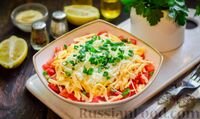 3 порции Сегодня я вам предлагаю приготовить шикарный слоеный салат с тунцом, помидорами, сыром и яйцами. Рецепт очень простой, салат получается сочным и нежным, невероятно вкусным. Без всяких сомнений, этот салат можно подавать на праздничный стол. Все ингредиенты изумительно сочетаются между собой. Возьмите рецепт на заметку, думаю, вы им воспользуетесь не один раз. Продукты: Тунец в собственном соку - 200 г Помидоры - 150 г Сыр твёрдый - 100 г Яйца - 4 шт.Майонез - 4 ст. ложки Лук зелёный - 15 г Соль - по вкусу Перец чёрный молотый - по вкусу Пошаговый фото рецепт Подготовить все необходимые продукты по списку.