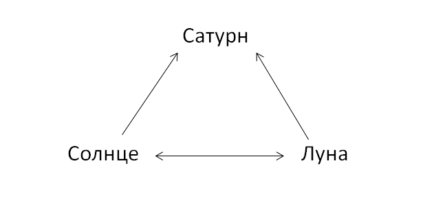 Сегодня хотелось бы поговорить о символизме тройки в мироздании, основой которой является фигура – треугольник. Треугольник личности строится на трех планетах. Основа треугольника – Солнце и Луна , Вершина Сатурн. Но в нашей школьной системе Венера.