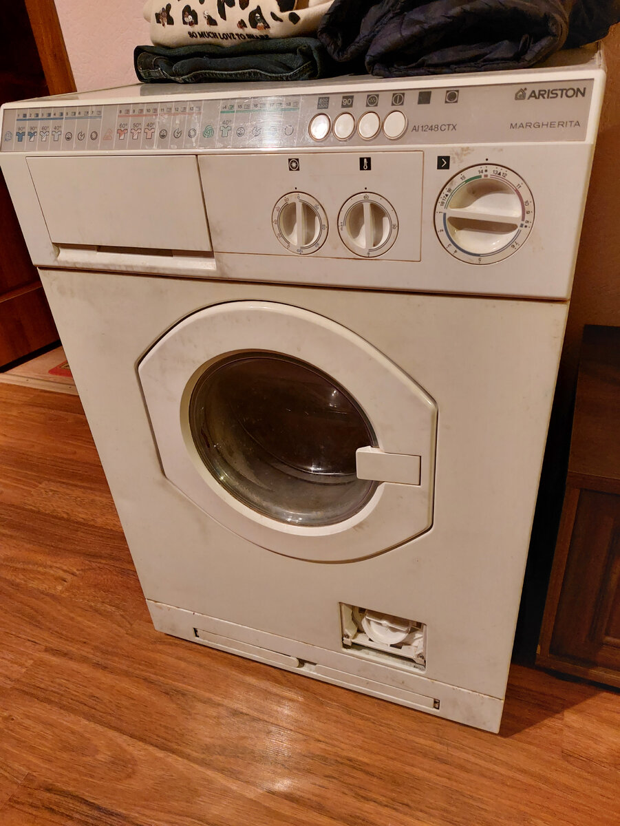 А наша была уже я юв сказала старушкой, так как мы уже не помнили сколько ей лет)), но порядка 20 лет). Конечно за это время она успела 1 раз только испортить нам настроение и потечь спереди. Достаточно было просто открутить клапан и прочистить. И снова в строю. Потом мы купили новую, а нашу подружку выставили за дверь((, там простояла она два года без работы. А потом снова поставили её на место и проверили- стирает!!! И снова стали жить дружно, но потом как-то раз и наша подружка Аристон вдруг перестала стирать😳.