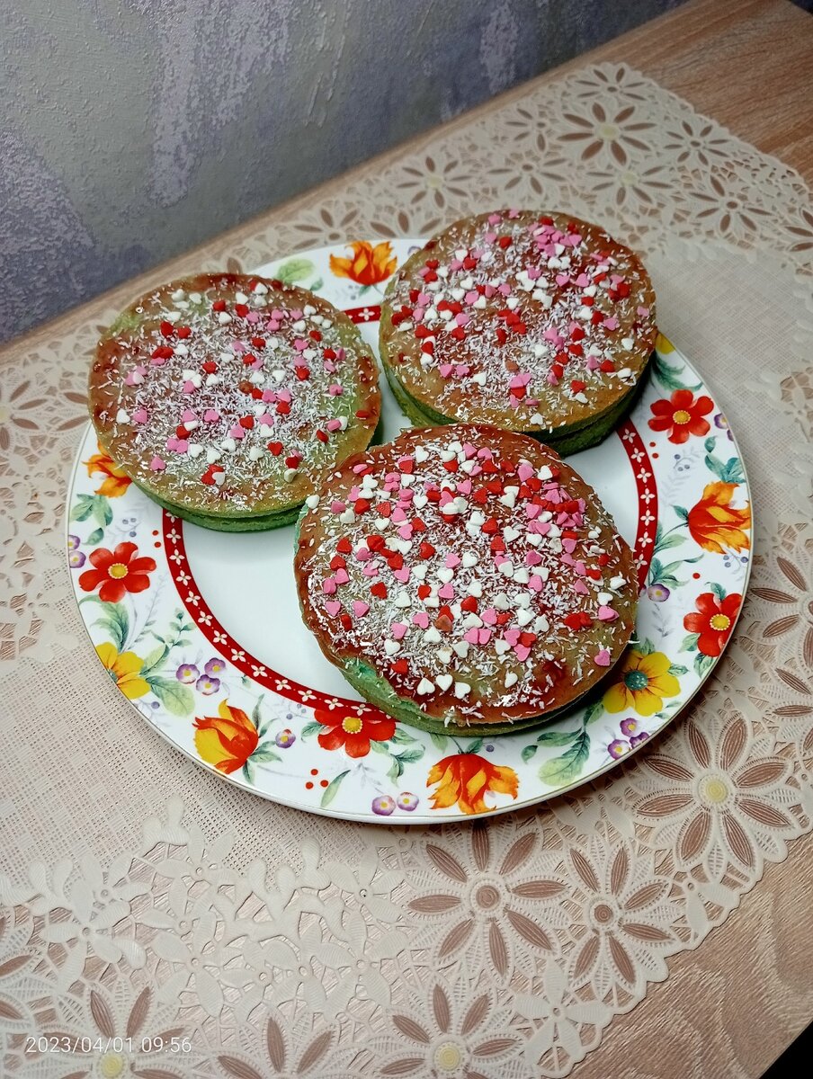 А сверху джемом и посыпьте, кокосовой стружкой я ещё посыпала кондитерской присыпкой, но это уже пожеланию.