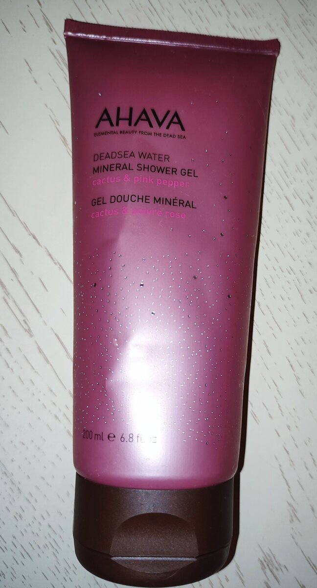 Как-то у нас в группе был Тайный Санта и моя Снегурочка подарила мне данный гель для душа. Я видела эту фирму и знаю, что она Израильская. Мне понравилось описание производителя: Минеральный гель для душа на основе мягко очищающих компонентов, не пересушивающих кожу. Мягкая смесь очищающих веществ, увлажняющих компонентов и мягких растительных компонентов делает кожу свежей, увлажненной и эластичной. Cactus and Pink Pepper — искрящееся сочетание сладкого дикого цветка пустыни и ароматного розового цветочного аромата, которое пробудит женственность в каждой девушке. И да, гель для душа бессульфатный. Гель для душа находился в красивой коробке , которую я, к сожалению, выкинула. У нее был белая лицевая сторона и по бокам цвета розового золота с подробной информацией. Также внутри был вкладыш. Сам гель находится в тубе розового цвета с золотистыми вкраплениями. Объем 200 мл. Мягкий матовый пластик. Черная удобная крышка флип-топ. Сам гель достаточно густой и прозрачного цвета. Очень прият
