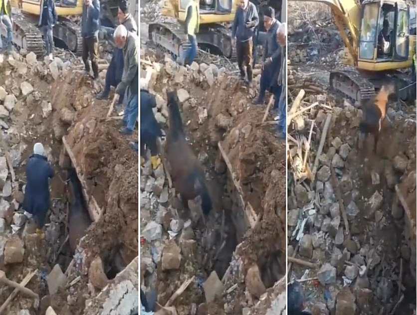 Тряска случились 6 февраля, и вот спустя 21 день, в сети появляется видео, как из-под завалов выводят лошадь. Животное без движения смиренно дожидалось спасателей и смогло самостоятельно передвигаться.