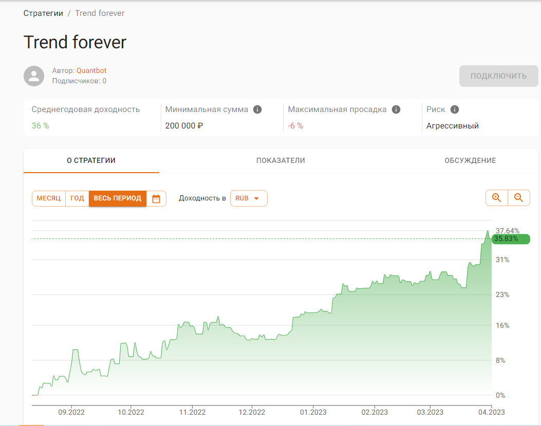 Март закончился новыми высотами по депозиту. Trend forever: Общий итог 35,83% с августа 2022 года. Март – 5,83%. Прибыль достигала 37,64%/7,24%, но падение рынка в пятницу немного ухудшило результат. Trend forever stocks: Общий итог 20,23% с ноября 2022 года. Март – 2,39% . Прибыль достигала 22,68%/4,47%. Падение пятницы так же ухудшило результат. Firefly он же скринер: Общий итог 2,48%. Прибыль достигала 4,5%. Бот торгует первый месяц только акции и только в лонг. Подробнее про скринер здесь. Наш телеграмм