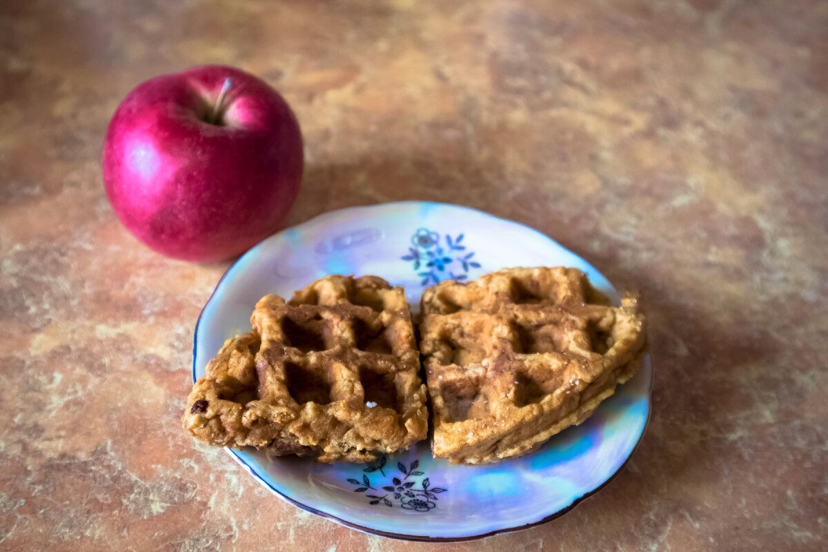 Этот тот случай когда приготовила спонтанно, из того что было. Получилось вполне съедобно, и даже можно позже повторить. Несколько увядших яблок вдруг увидела только в выходной. Внешний вид укоризненно напоминал, пролежали напрасно, никому ненужными. Муж сказал, что для него твердоваты, поэтому и не съел. Мне по утрам в будние дни яблоки некогда есть. Вечерами их не замечала. Выбросить яблоки со сморщенной кожурой рука не поднялась. Внутри они нормальные, только что увядшие. Для выпечки сгодятся. Вспомнила про вафельницу, которая давно бездельничает. Пришла идея спечь яблочно-морковные вафли. Хотя было понятно, что хрустящими они не будут. Но в продаже есть и мягкие вафли и толстые тоже. В итоге вот что получилось. Пекла вчера. Сегодня решила, что надо записать из чего готовила, чтобы потом не забыть. Было 8 сморщенных яблок, чуть меньше размером, что на фото. Удалила с них кожуру и натерла на крупной терке. Добавила морковь средней величины. Ее измельчила на мелкой терке. Уважаю в