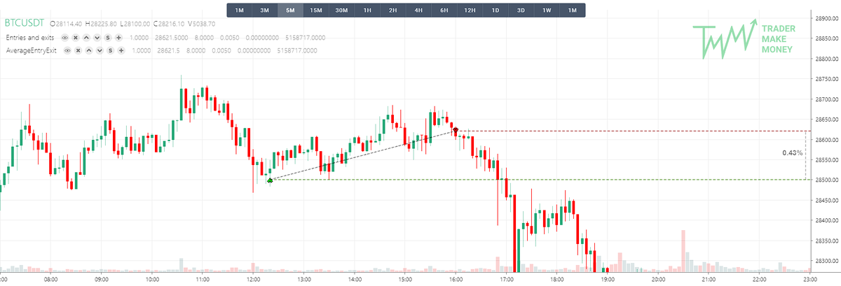 👣 Из-за небольшого отката закрыл сделку вручную, хотя ТП сработал бы ночью на 28 200. Не дотерпел. В итоге +4.15%