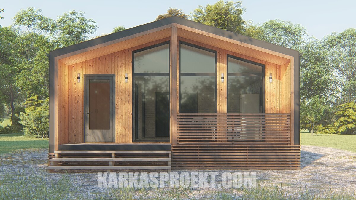 Дом 7х11 в стиле Барн - 2 спальни, кухня-гостиная, терраса. Проект + расчёт материала