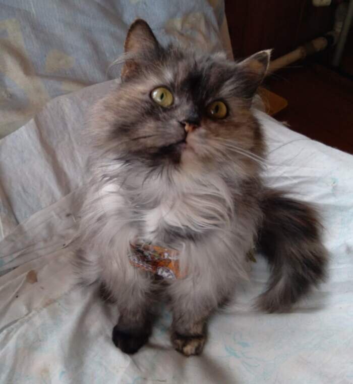 Настолько славная, что было бы кощунством не попробовать найти ей дом. Не котославно! Очень благодарная и ласковая, но совсем ненавязчивая. Удивительно гармоничная, спокойная, уютная и светлая киса. Внешне – хорошенькая невозможно, с чуть приперсюченной моськой и красивым черепаховым окрасом. Появилась эпизодически ещё летом на помойке в деревне, была ухоженной и явно недавно из дома. Потом пропала и не попадалась на глаза аж до весны. А в марте уже объявилась вся в колтунах и ранах там, где они оторвались. Где она зимовала и почему опять оказалась на помойке в таком запущенном виде неизвестно. По белоснежным зубам без какого-либо налёта я б ей больше 2 лет не дала. По состоянию матки при стерилизации врач сказала, что много рожала и лет 5. Но такое может быть не от количества родов, а от числа котят в помете, если их было очень много. Так что Соне вполне может быть и 2-3 года. С лотком все ок, аппетит отменный, шуба отрастет. Пока живёт в деревне в 100 км на юг от Москвы в Тульской об
