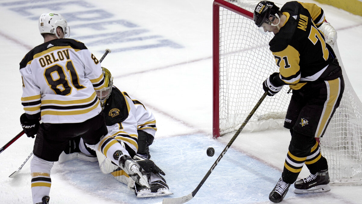 Начнём с матча, в котором Питтсбург принимал Бостон. Пингвинз сегодня победы нужны как воздух, но лидер чемпионата не собирался дарить сопернику очки и сумел одержать победу со счётом - 4:3. Каждый раз Брюинз выходили вперёд, но хозяевам удавалось сравнивать счёт. За две с половиной минуты до финальной сирены форвард гостей Давид Пастерняк забросил победную шайбу. Чех сегодня стал главным героем матча: нанёс 8 бросков и сделал хет трик. В одной из шайб поучаствовал российский защитник Дмитрий Орлов, записавший на свой счёт голевую передачу. Российский форвард "Пингвинов" Евгений Малкин четырежды угрожал воротам соперника, но не сумел набрать ниодного очка.