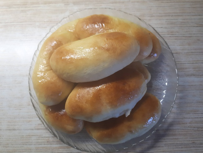 Здравствуйте, мои дорогие читатели! Сегодня я хочу предложить вам рецепт пирожков с зелёным луком и варёным яйцом в картофельном тесте. Пирожки получаются неимоверно вкусные. Такие мягонькие! И на следующий день, они остаются такими же мягкими. За основу мы возьмём тесто на картофельном пюре. Для теста нам понадобится: Мука 300 гр(+/-) Картофельное пюре 200 гр Вода 100 мл Дрожжи 5-6 гр( сухие ) Растительное масло 25 мл Сливочное масло или маргарин 25 гр Яйцо 1 шт 2 ч.л Соль 1 ч.л ( без верха ) Замешиваем тесто. Накрываем, даём ему подняться где то час, может полтора часа. Тесто получается слегка липнущее к рукам. Пока тесто поднимается, готовим начинку. Нарезаем зелёный лук, крошим вареные яйца. Подсаливаем, смазываем растительным масло и все это делаем по вкусу. Как только тесто поднялось, можно лепить пирожки. Тесто делим на столько частей сколько вы хотите испечь пирожков и какого размера они будут. У меня получилось девять штук, весом по 55 гр Накрываем их полотенцем