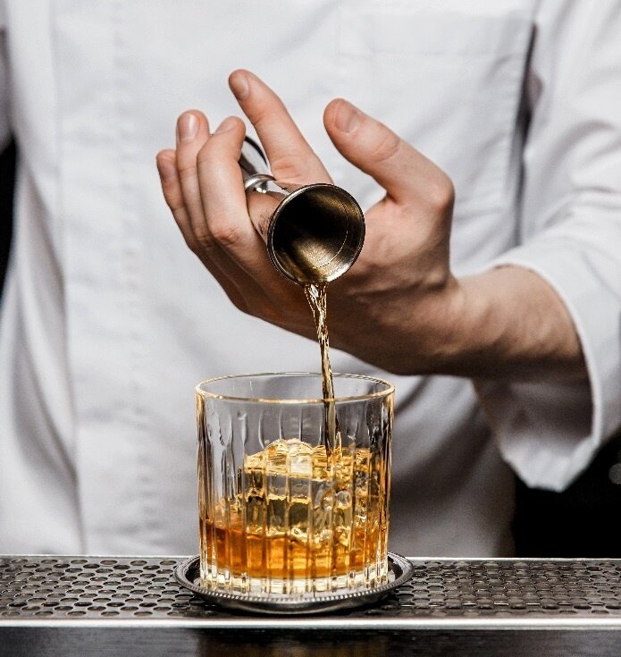 2)С помощью джиггера влей необходимое количество жидкости. Обрати внимание на то, что алкоголь необходимо добавлять от более «слабого» к более крепкому;