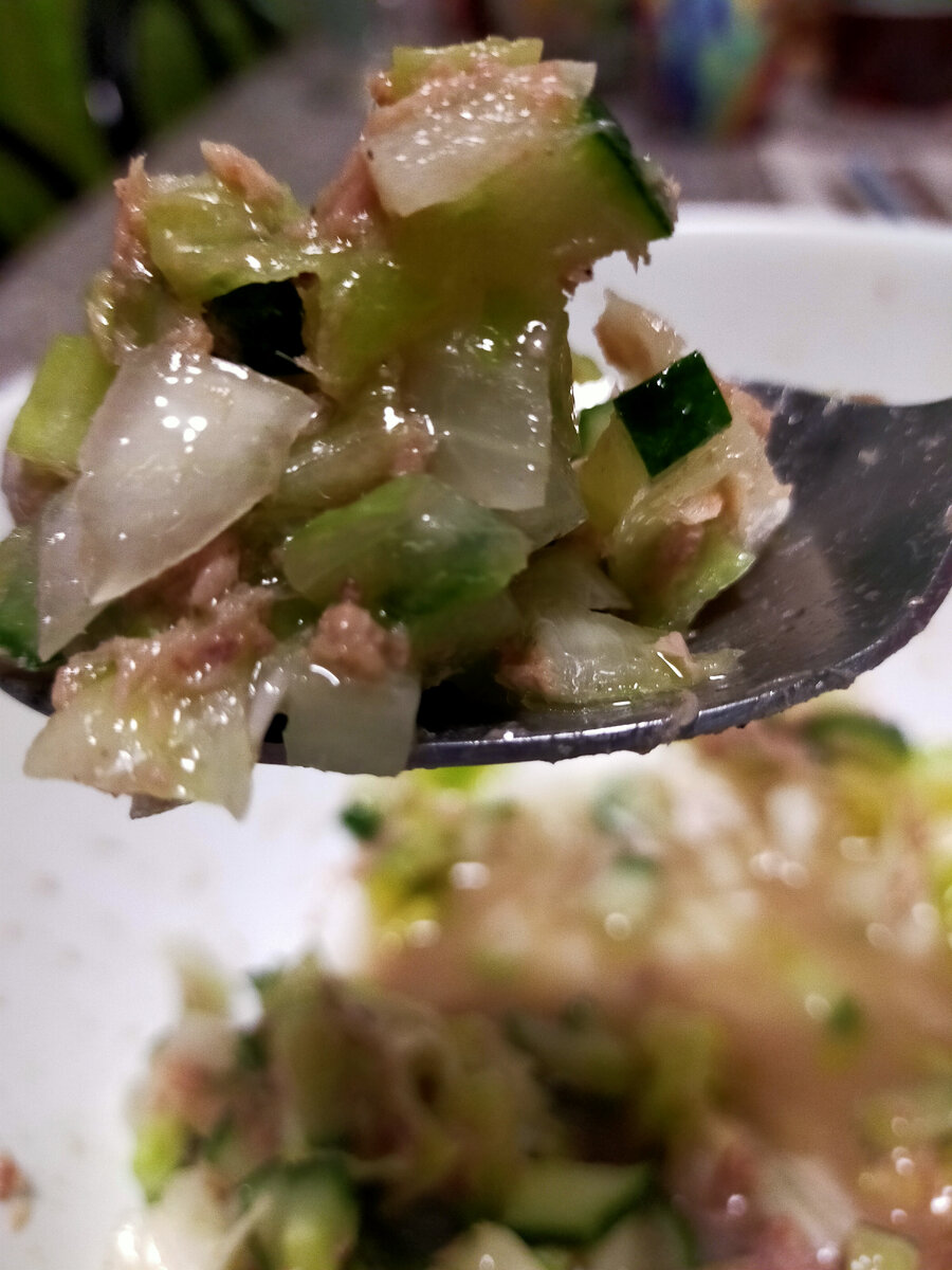 Приветствую вас, дорогие мои друзья,на нашем канале 💓🐾🐾💓🐾💓! Я, кстати,не просто так пишу " НА НАШЕМ КАНАЛЕ"🌺 Это наш с вами канал,вы здесь всегда желанны! Так вот,салат... Салат оооочень простой,готовится за несколько минут. Одна банка тунца( масло лучше слить),одна луковица,пекинская капуста и огурцы.Солим и перчим по вкусу,заправляем маслом растительным и добавляем зелень ( кому какая нравится,но можно и без неё) Приятного аппетита! Улыбайтесь чаще, присоединяйтесь к нам,делитесь комментариями 🌺🌺🌺 Всех обнимаю ❤️