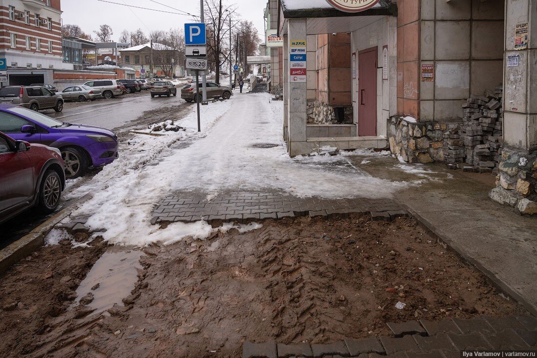03. Первым делом надо было почистить тротуары и переходы, но в Перми любой пешеходный маршрут – это полоса препятствий.