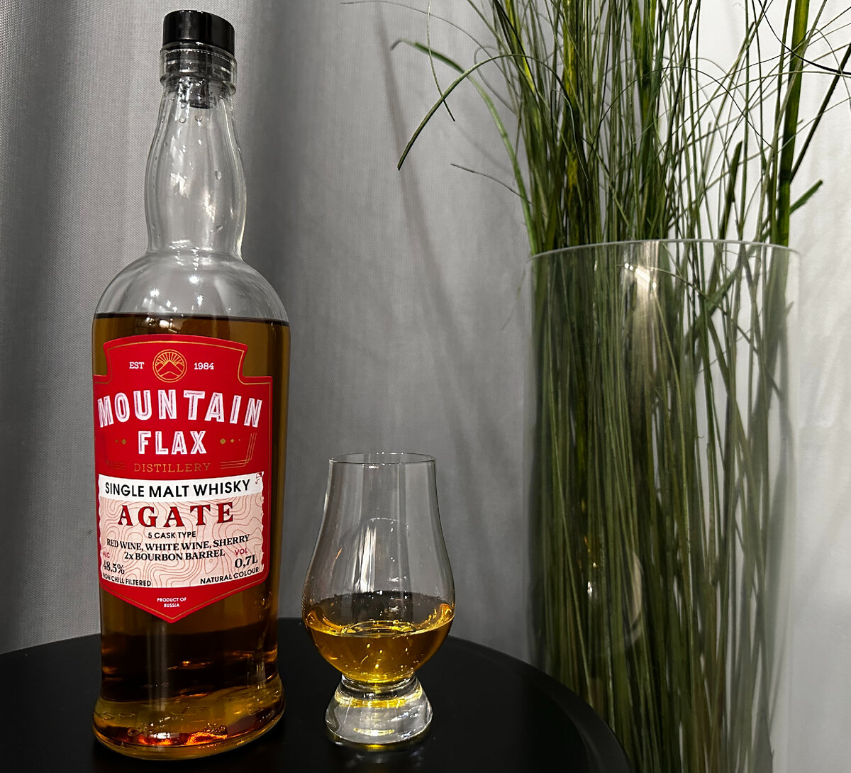 Чрезмерное употребление алкоголя вредит вашему здоровью. Алкоголь противопоказан детям и подросткам до 18 лет, беременным и кормящим женщинам, лицам с заболеваниями центральной нервной системы, почек, печени и других органов пищеварения". Приветствуем Вас, дорогие друзья! Мы уже не раз рассказывали про продукцию @Mountain Flax Distillery, до знакомства с которой мы весьма скептически относились к виски с просторов нашей необъятной. Но каждый новый релиз, каждая новая дегустация только повышала градус нашего интереса, поэтому когда мы узнали о появлении нового релиза мысль была только одна - надо пробовать! Итак, встречайте новинку Mountain Flax Agate. Повышенная крепость, интересный набор бочек, в общем всё как мы любим! О виски Agate - это купаж солодовых спиртов, выдержанных в разных бочках. В данном виски было использовано 5 типов, а именно: бочки из-под красного и белого вина, две бочки из-под бурбона, а так же хересная бочка. Колер: отсутствует Холодная фильтрация: отсутствует Кр