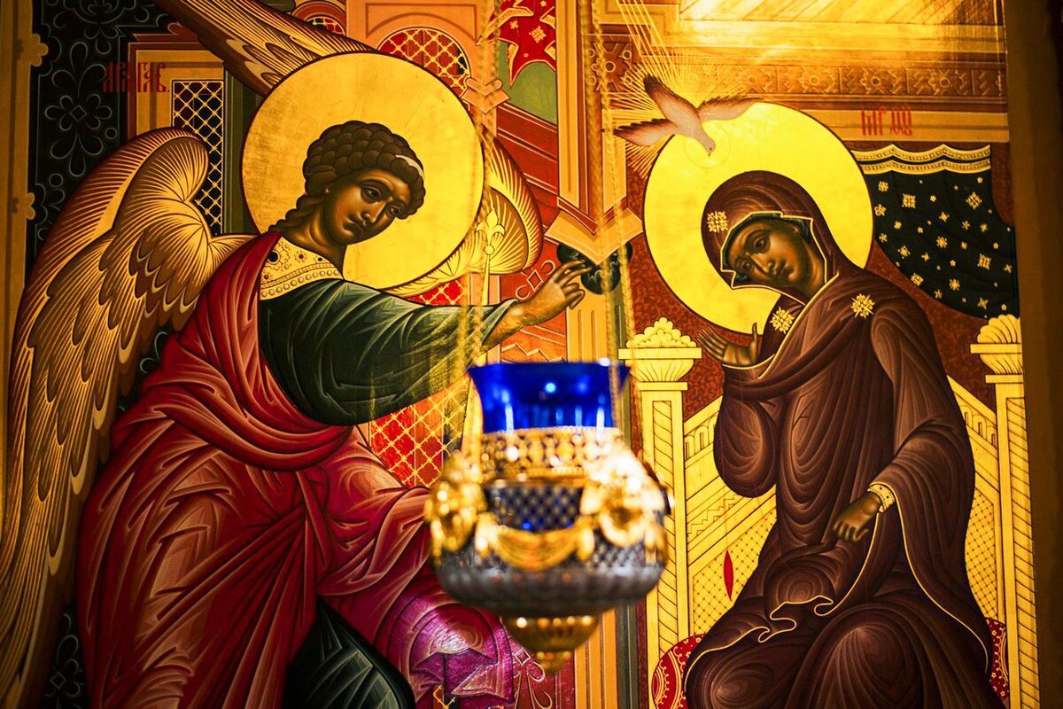 Сегодня все православные празднуют величайшее событие, о котором нам рассказывается в Евангелии от Луки – Благовещение. В прошлом данный праздник именовался как «Зачатие Христа», «Благовещение о Христе», «Начало искупления», «Благовещение Ангела Марии». Привычное нам название появилось в седьмом столетии. Данный праздник относится к двунадесятым, Богородичным, поэтому священнослужители одеваются в одеяния голубого цвета. Как пишет Лука: Жена священника Захарии, именуемая Елизаветой, зачала Иоанна Крестителя. Спустя полгода после этого, к Богородице явился Архангел Гавриил и сказал ей следующее: «Радуйся, Благодатная, Господь с Тобою!». Будущая Богоматерь смутилась явлением божьего посланника. И это многое говорит о ее разумном и чистом подходе к духовным явлениям, так как известно, что и демоны имеют способность принимать вид ангелов и смущать, вводить в прелесть человека. Рассудительность Марии может быть противопоставлена наивности Евы, которая приняла в сердце свое змеиную лесть на