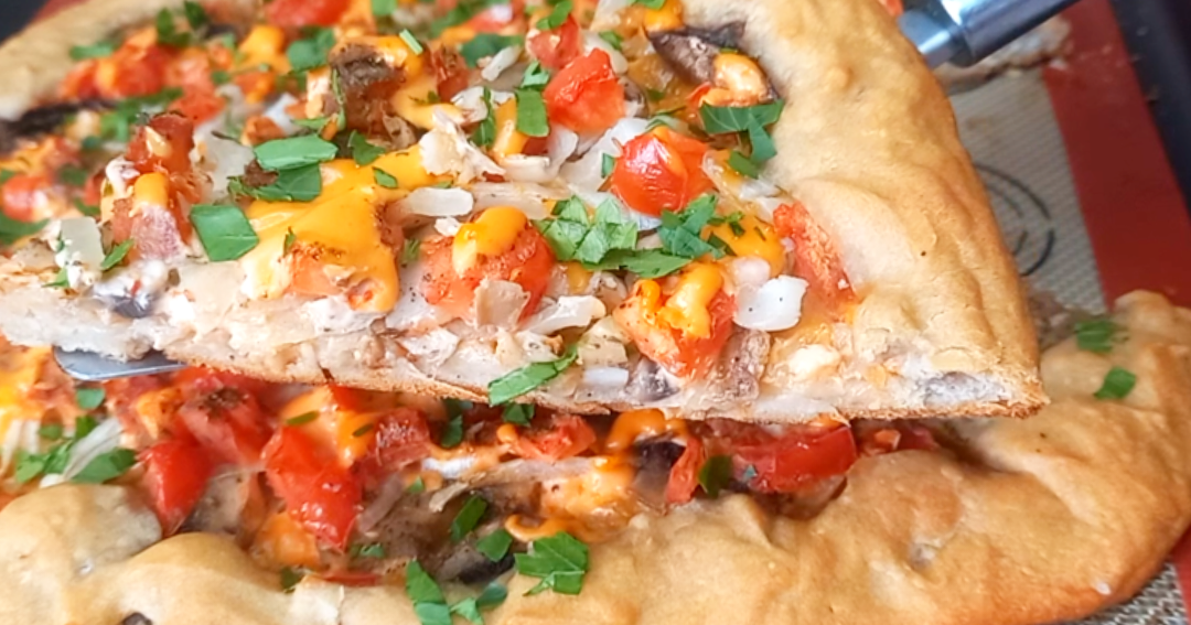 Сегодня готовим постную пиццу! Вкусную, сочную и ароматную, мало теста и много начинки! Для начинки подготовим все ингредиенты. Репчатый лук очищаем и нарезаем четверть кольцами. Свежие шампиньоны моем, сушим и нарезаем пластинками. Один крупный помидор нарезаем мелким кубиком. Далее приготовим соус. Берем 3 столовые ложки постного майонеза Как приготовить постный майонез смотрите ниже. Добавляем к майонезу 3 столовые ложки любого кетчупа и хорошо перемешиваем. А теперь берем постное дрожжевое тесто, выкладываем на противень, руками распределяем тесто пласт равномерным слоем. Тесто не доходя до краев смазываем половиной соуса. И первым слоем выкладываем половину нарезанного лука. Вторым слоем кладем грибы, сверху на грибы выкладываю вторую часть нарезанного лука. Следующим слоем кладем сверху нарезанные помидоры. Солим по вкусу и посыпаем любимыми специями. Я добавляю прованские травы. И все это сверху поливаем оставшимся соусом. А дальше края теста заворачиваем наверх. Подготовл
