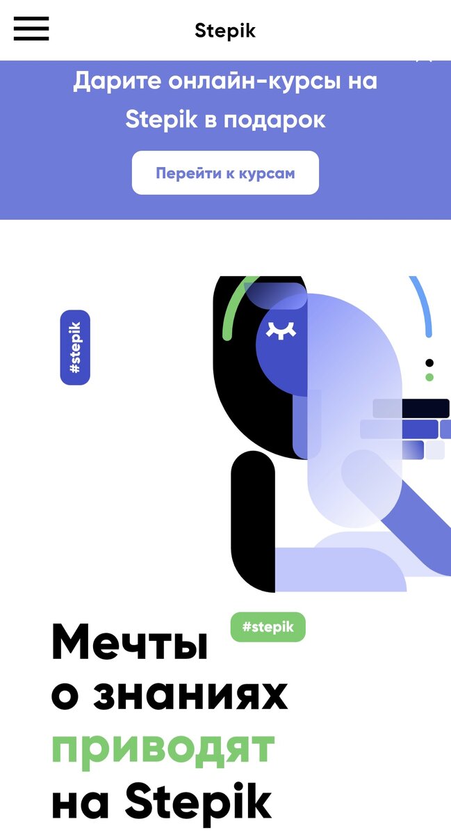 Stepik (от англ. step - "шаг") - это образовательная платформа с различными интересными платными и бесплатными курсами. Иностранные языки, программирование, психология, история, литература, философия и многое другое - есть из чего выбрать. На данной платформе можно овладеть базовыми знаниями в определённой отрасли, а можно глубоко погрузиться в преподаваемую дисциплину. Есть как небольшие курсы (рассчитанные на 10 часов, 2 недели, месяц), так и объёмные, рассчитанные на 2-3 года. В конце обучения можно получить сертификат. Курсы подойдут как школьникам, так и взрослым. Это новое образование: открытое и удобное 💠