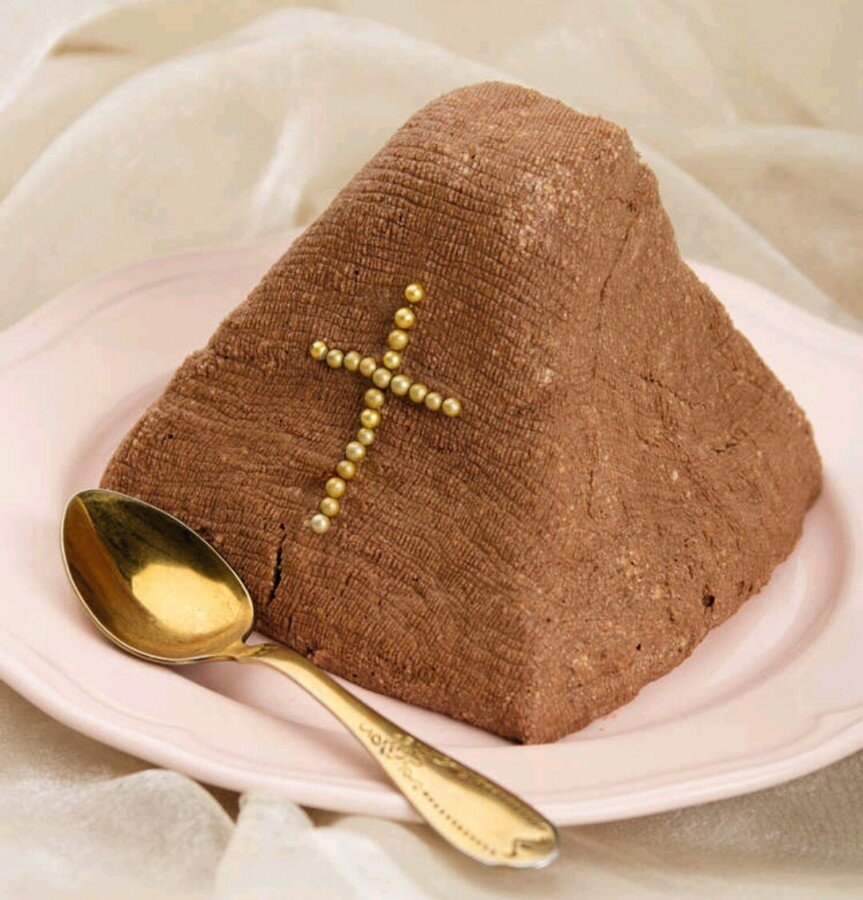 Творог 1 кг, шоколад 150 гр, сахарная пудра 3/4 стакана, сливочное масло 150 гр, сметана 1 стакан, цукаты полстакана. Шоколад натереть на тёрке, смешать с сахарной пудрой и растопить на водяной бане. Творог протереть через сито, добавить сливочное масло, сметану, шоколадную массу, перемешать, чтобы масса имела равномерный цвет. Выложить в форму, застеленную марлей, положить груз и поставить на сутки в холодное место.