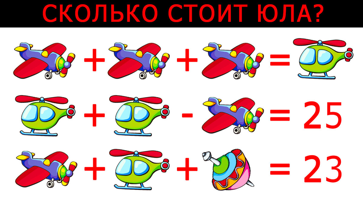 1. Математическая головоломка. Нужно определить сколько стоит одна юла.