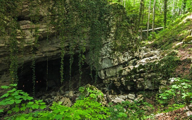 Вход в пещеру закрыт зеленым пологом из растений. Пройдя его, ощущаешь прохладную тишину, и только ручей, несущий свои воды от Лика, журчит свою песню.