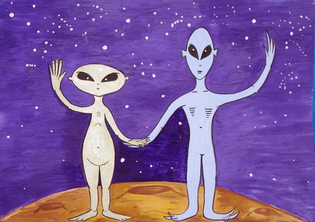 Так они проболтали до самого позднего вечера. Пришельцы рассказали, что искали планету, где можно заправиться, пополнить запасы и отправиться дальше. Но задержались здесь, так как их корабль куда-то делся. Их планета находиться в нескольких световых годах от Земли. Они разведчики, поэтому небольшие и самые быстрые. Другие на их планете разных размеров, всё зависит от функции, которую они выполняют. Живут они колониями. Уже при рождении они знают, кем будут.