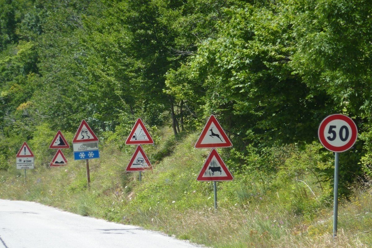 Знаки дорожного движения должен знать каждый участник движения. Есть знаки, которые мы встречаем каждый день, например, знак пешеходного перехода или главная дорога. Но есть и такие, которые попадаются крайне редко. К таким можно отнести знаки, которые находятся в горной местности. В этой статье мы хотим рассмотреть как раз самые распространённые знаки, которые преимущественно встречаются в горах. Знак 1.28 «Падение камней» Один из самых распространённых знаков на горных серпантинах, выглядит, как треугольник с красной обводкой, внутри которого изображен обвал камней. Знак предупреждает водителя о возможном обвале со стороны склона. На всей протяженности пути, пока знак актуален, водителям не рекомендуется резко увеличивать скорость и резко тормозить. Обычно знак устанавливают за 150–300 метров до опасного участка. Знаки 1.13 и 1.14 «Крутой спуск» и «Крутой подъем» соответственно Знак представляет из себя треугольник с красной окантовкой, внутри которой изображен покатый треугольник