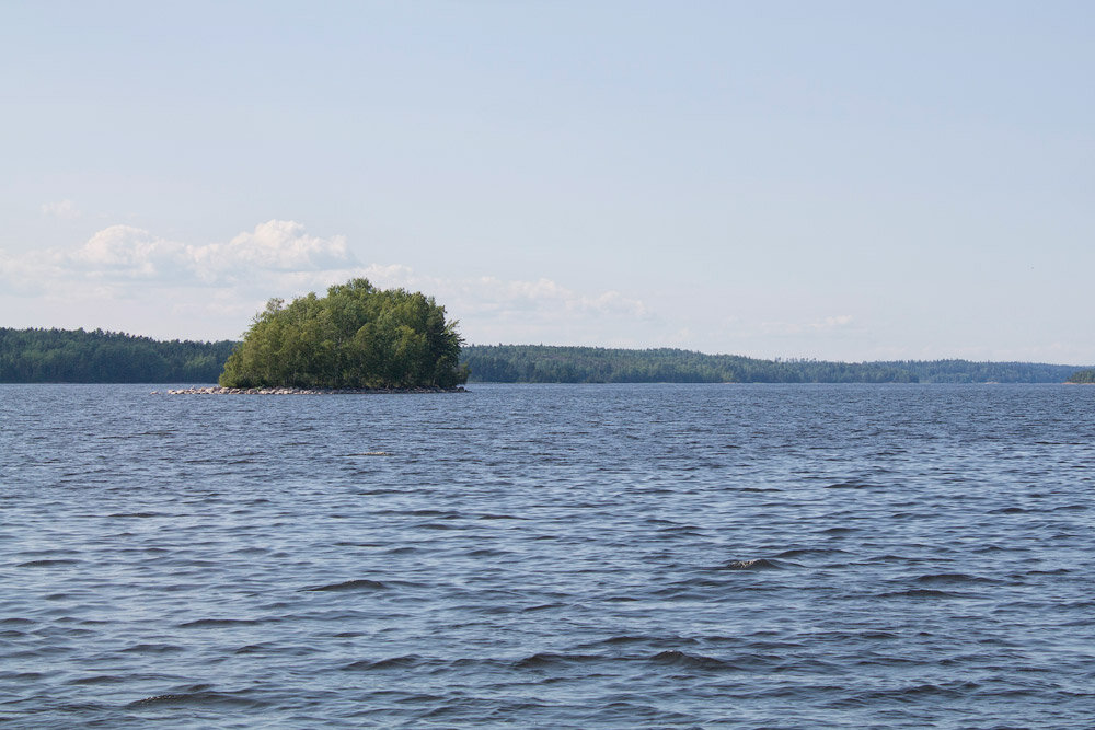 [09.10.2019] Пообедав на Бурневе, снялись с острова и выдвинулись в северо-западном направлении, в залив Лехмалахти. На пути попадались рыбные фермы. Через полчаса приплыли к следующей точке - скале около маленького заливчика Подгорный, на вершине которой находится старая заброшенная каменоломня. Забрались на вершину. Виды на Ладогу отсюда невероятной красоты.