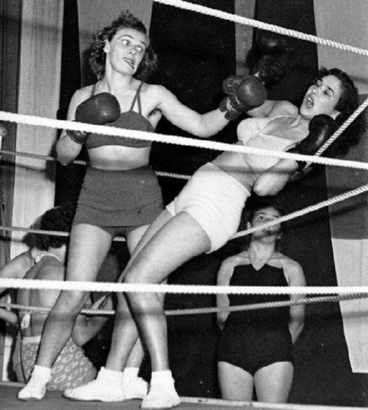 Мисс Швеция уходит в нокаут, а Мисс Италия одерживает победу. В прошлом веке бывало, что самая красивая девушка определялась так! 1949г. Чтобы оставаться такими же стильными и привлекательными, в военное время девушки использовали такой способ: рисовали стрелки прямо на ногах. Из-за кризиса чулки были в дефиците. 1942г На международном автосалоне в Британии запечатлен ВАЗ. 1980г Завистливые девушки разрывают на кусочки стильный костюм другой дамы!