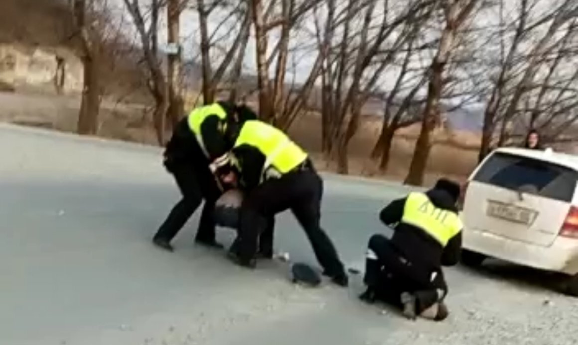 «Лицом в пол»: жесткое задержание прошло прямо на дороге в Приморье — видео