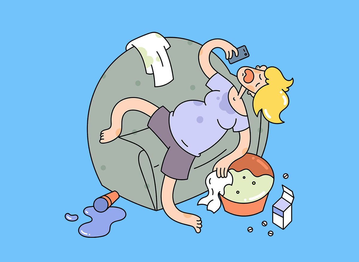 «Все три беременности у меня был токсикоз по вечерам. Как по будильнику, часов в шесть-семь вечера меня начинало мутить, к счастью, тошнило несильно и длилось это недолго. О третьей беременности я так и догадалась — пару дней подряд меня по вечерам тошнило. В первую беременность было даже обидно, на работе я весь день была бодрячком и пахала, как конь, а как приходила домой, могла только лежать или блевать. Зато во вторую и третью было удобно — я днем с детьми нормально гуляю-играю, а вечером на подхвате были муж и мама, и я могла спокойно страдать».