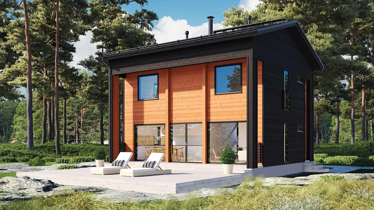 Площадь- 124 м2 Деревянный дом с баней излучает тепло и хорошее качество жизни. Стильные решения выдерживают время, создают приятные впечатления и комфорт проживания. Из больших и высоких окон деревянного дома открывается потрясающий вид на окружающий пейзаж, в комфорте которого легко расслабиться.