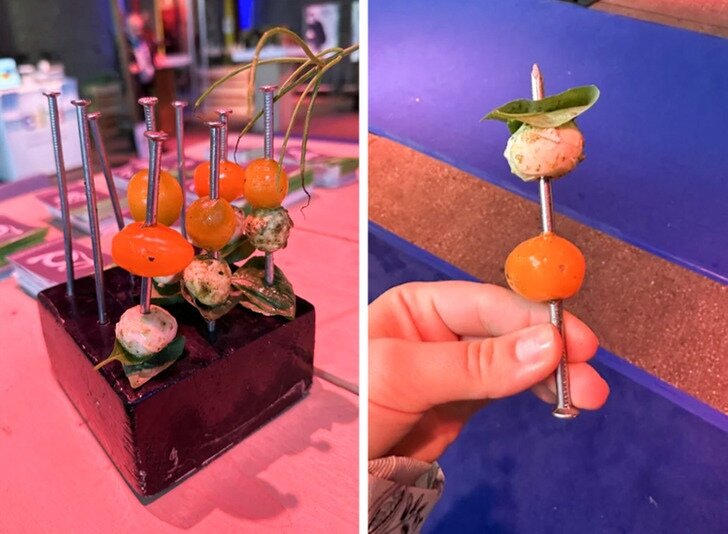 Люди ходят в рестораны не только чтобы отведать вкусной еды, но и за яркими эмоциями. Пользователи интернета показали фотографии из таких заведений, в которых им пришлось столкнуться с диковинным интерьером или необычной подачей блюд: кому-то поставили ванну вместо стола, а кому-то принесли еду в кроссовке. «Мне принесли закуски на гвоздях» «В одном ресторане меня сильно обидели» «А мне подали сашими на шляпе» Масло на камне, чтобы напомнить о том, что это ресторан в горах Располагайтесь, будьте как дома