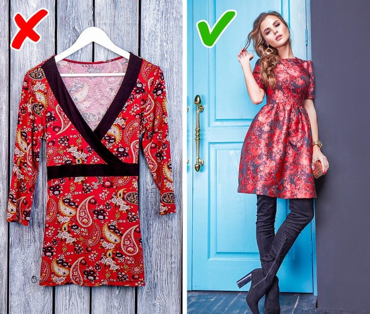 Риск купить неудачную одежду особенно велик при ее приобретении онлайн: мастерство продавцов, моделей и фотографов позволяет представить в выгодном свете даже самую неказистую, казалось бы, вещь. О своей ошибке мы узнаем лишь при примерке и зачастую как раз в тот момент, когда купленные наряды уже нет возможности вернуть в интернет-магазин. Вещь из онлайн-магазина презентуется без модели Наряды, представленные на сайте или в приложении онлайн-магазина без модели, могут оказаться сплошным разочарованием при их примерке в реальности. Не зная, как сидит та или иная вещь на фигуре, мы можем столкнуться с не самыми приятными нюансами при ее ношении. Так, понравившиеся на фотографии дизайнерской блузки декоративные завязки могут придавать лишний объем на животе, женственные рюши на ней в реальности иногда выглядят как устаревший декор, а рукава почему-то оказываются совсем не той длины, на которую мы рассчитывали. Модель стоит в неестественной позе Модели, которые презентуют одежду в эксце
