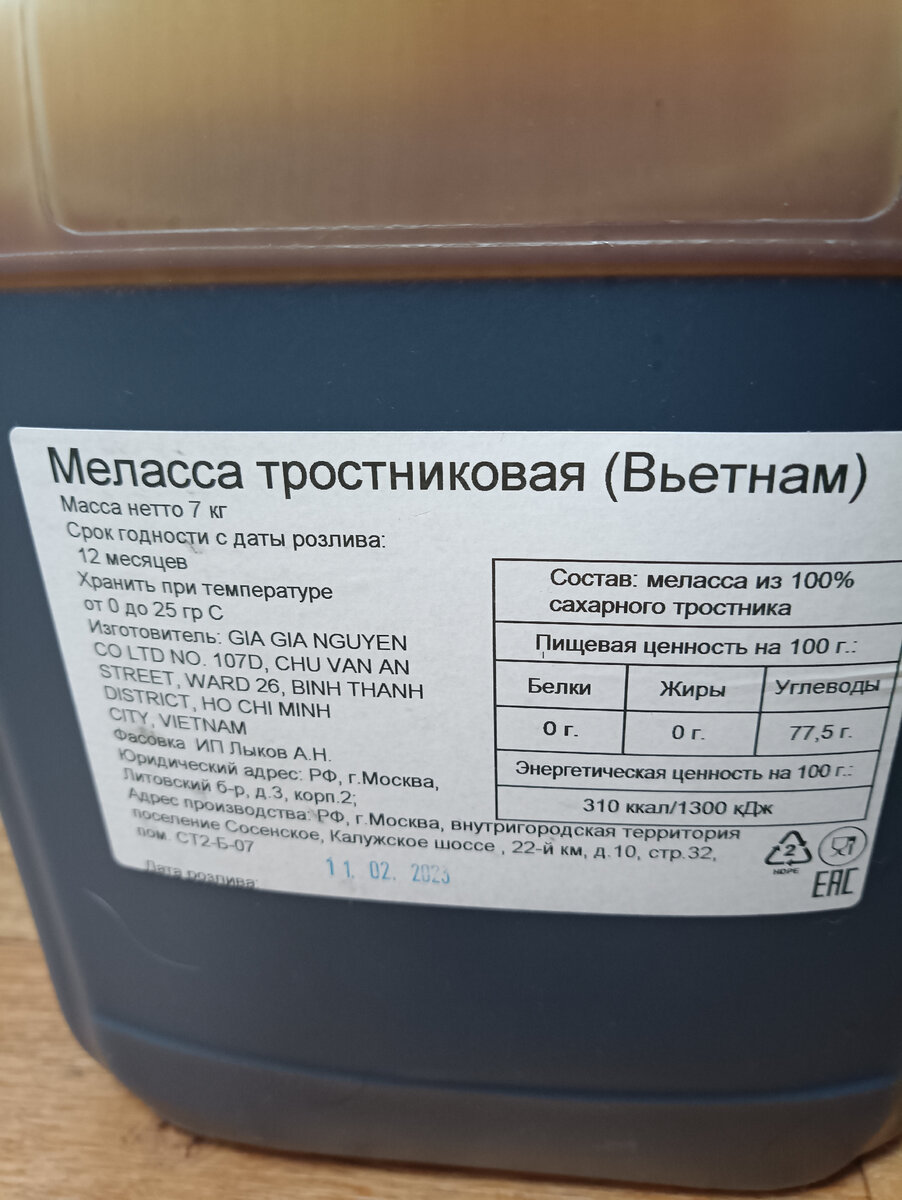 - Меласса тростниковая - 7кг ( куплена на ВБ за 1600р. )